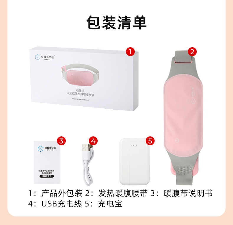采用石墨烯技术,瞬间温暖。发射6-14μm远红外波,深度缓解疼痛。三档温热设置,深层缓解经期期间引起的腹痛,腰部酸痛,搭配柔软透气面料,尺寸可调节适应不同腰围。易于携带,居家、工作或旅行皆宜。
