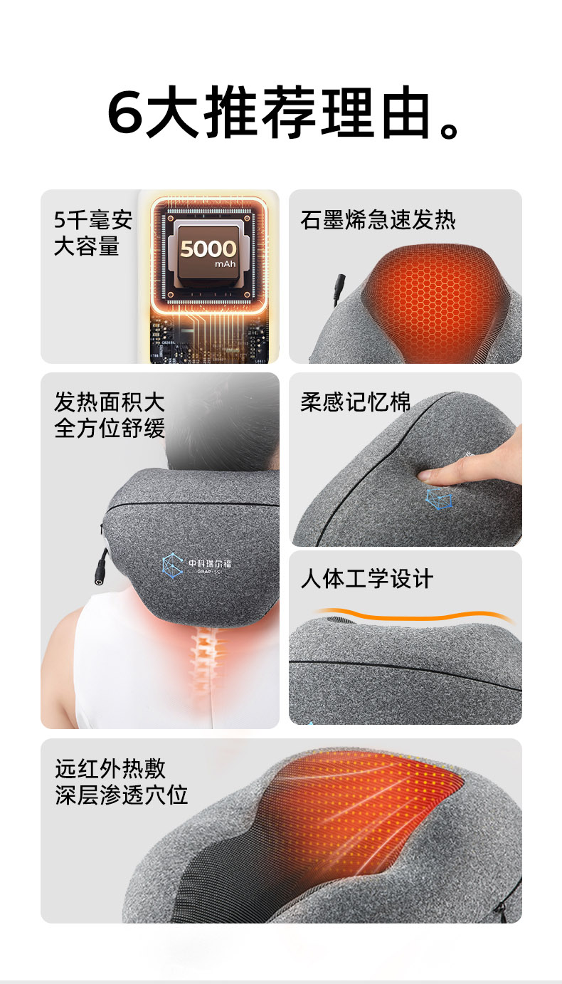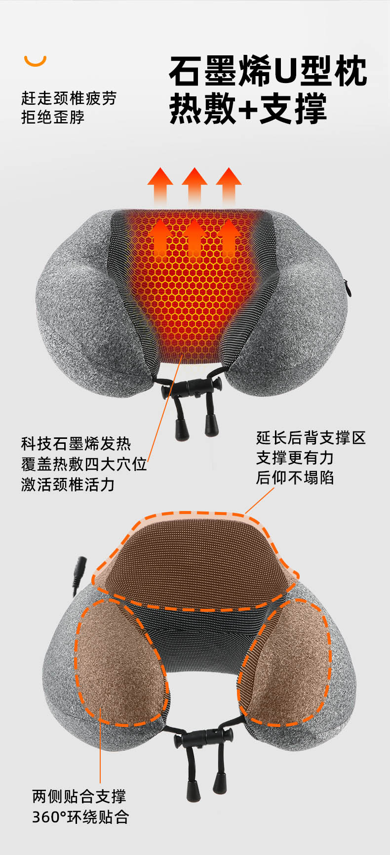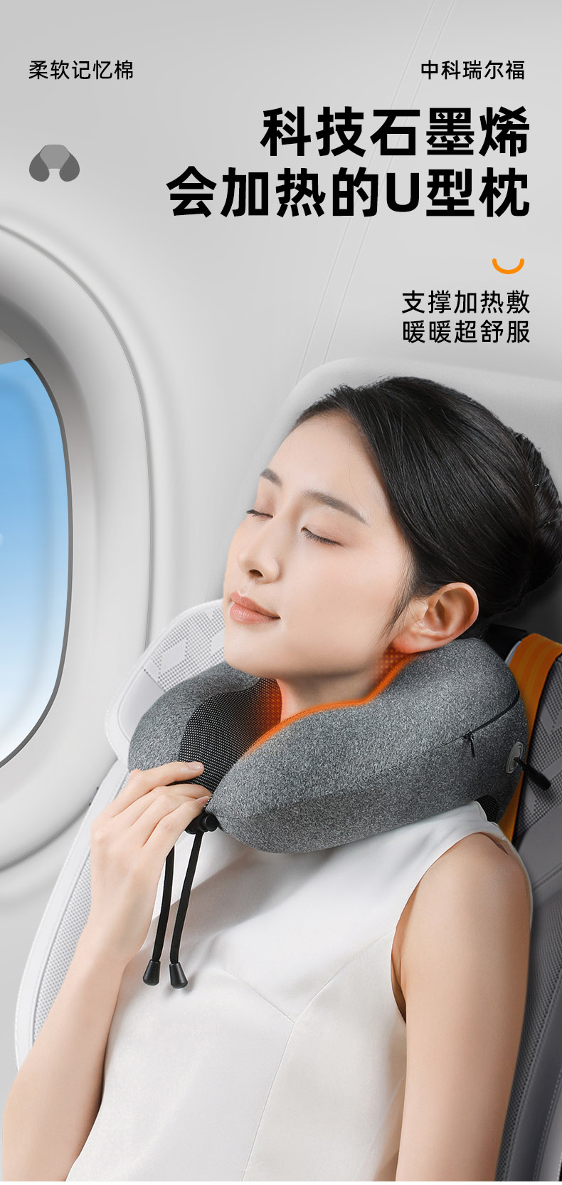 石墨烯发热理疗U型枕,为你在旅途中减轻劳累,放松舒适,享受你的旅行而生!