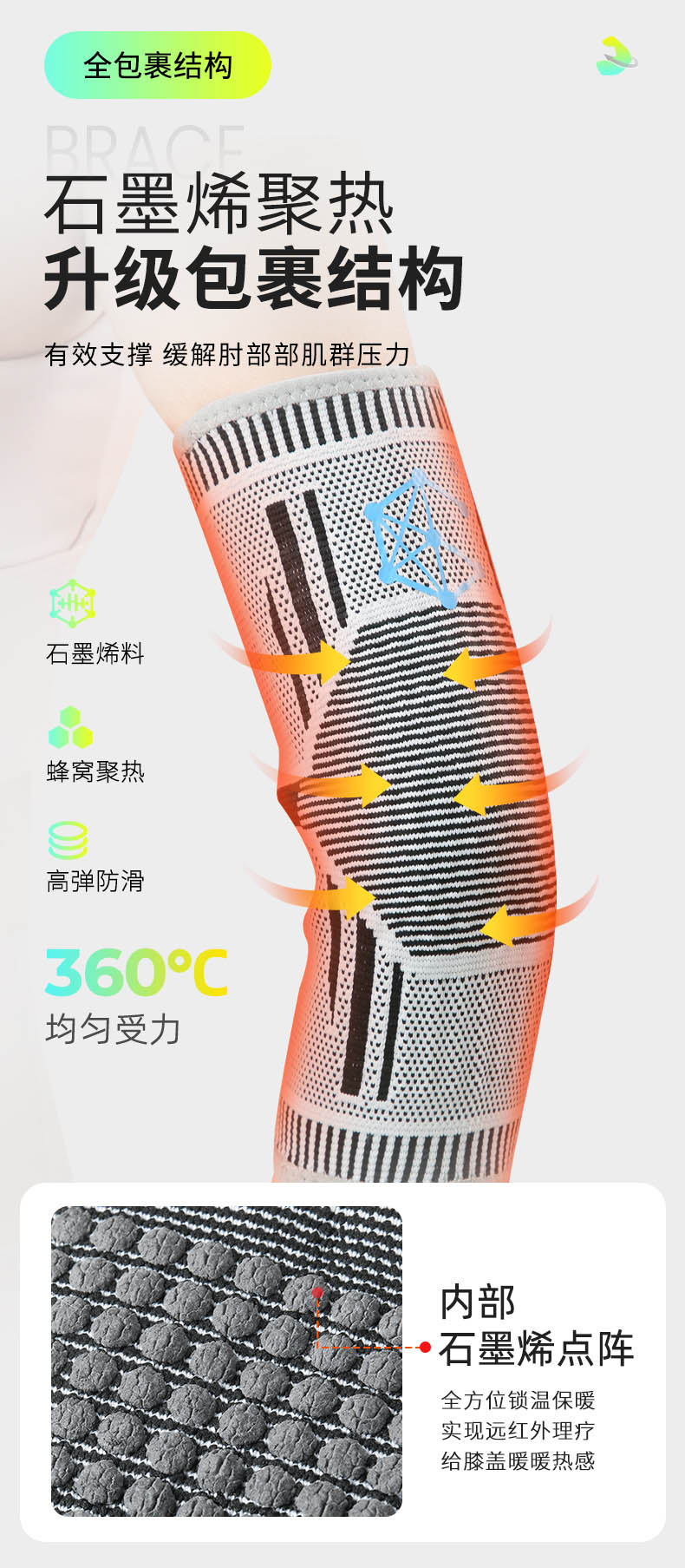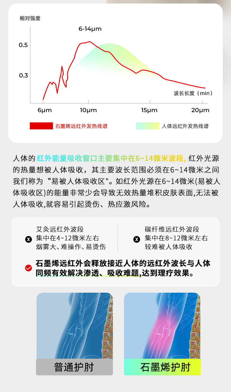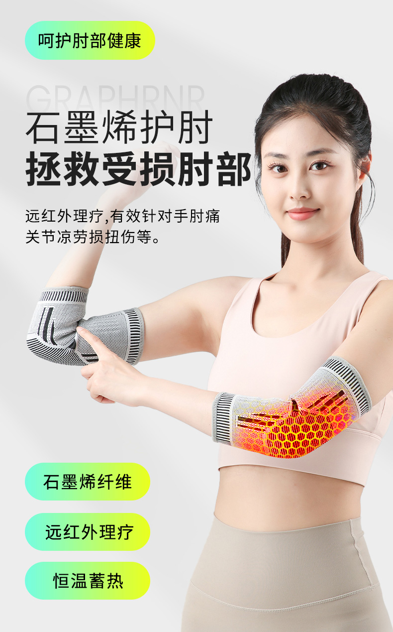 可定制利用先进的石墨烯材料吸收体热并发射远红外线,这使我们的远红外压缩肘部支架能够深入组织,增强血液循环,减少炎症,加速肌肉恢复。